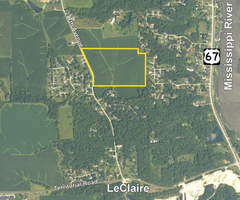The subject farm is located approximately 13 3/4 miles northeast of Quad Cities International Airport. Nearby cities include: LeClaire (1/2 mile south), Princton (2 1/4 miles north), and Bettendorf (3 3/4 miles southwest).