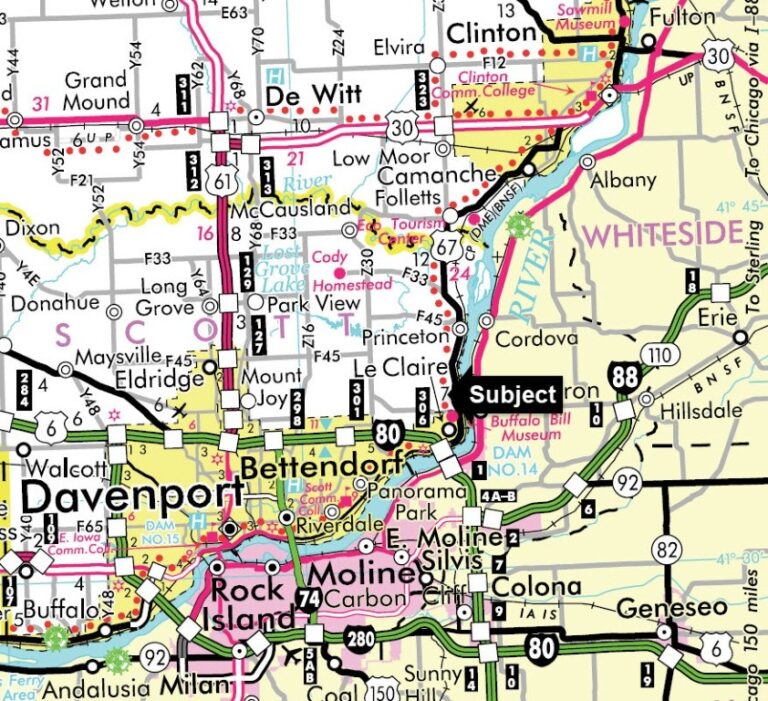 U.S. Route 67 is 3/8 mile east, Interstate 80 is 2 miles southwest, and U.S. Route 61 is 10 1/2 miles west of the property.