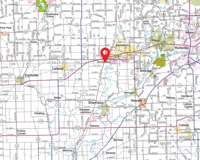The subject farm is located approximately 45 miles southwest of Chicago O'Hare International Airport and is contiguous to the Village of Somonauk. Nearby cities include: Sandwich (1 3/8 miles northeast), Yorkville (7 7/8 miles southeast), and Hinckley (9 7/8 miles north).